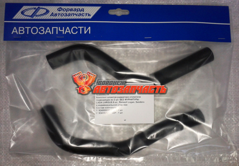 Комплект шлангов подводящих радиатора отопителя из 2 шт. LADA LARGUS 8кл, Renault Logan, Sandero в инд.упак. БЕЗ ФУРНИТУРЫ (Состав комплекта: 924000807-01Р, 924000807-02Р)