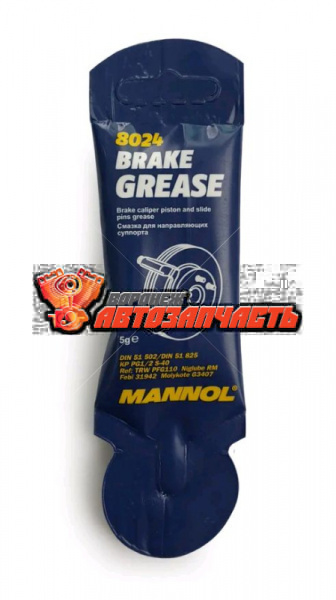 Смазка для направляющих и поршня суппорта тормозной системы MANNOL Brake Grease 5 г 8024 предназначена для того, чтобы обеспечить подвижность деталей суппорта, равномерный износ колодок и сократить тормозной путь. Для обеспечения долговременной защиты суппортов следует использовать специальные смазочные материалы, например, универсальную смазку для суппортов и направляющих MANNOL Brake Grease.
