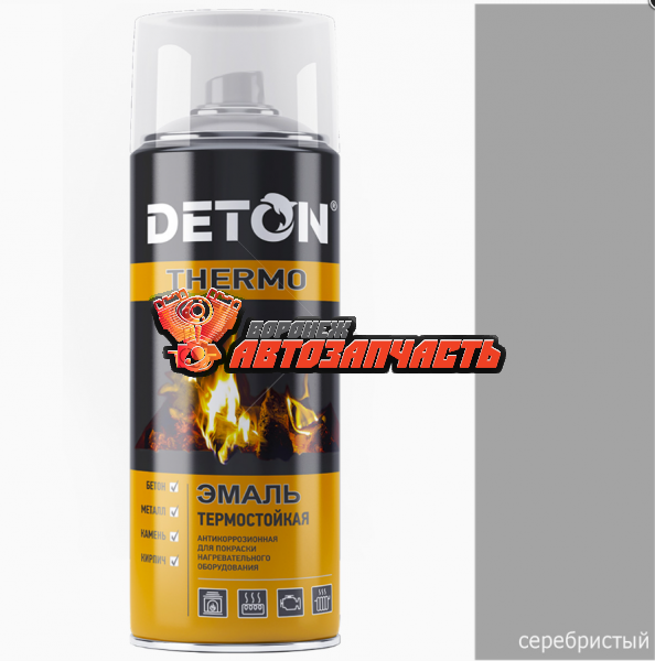 Эмаль термостойкая серебристая аэрозоль +650градусов DETON TERMO (520мл)