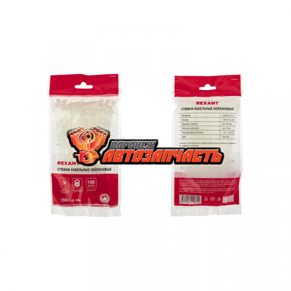 Стяжка нейлоновая 150x3,6мм, белая (100 шт/уп) REXANT