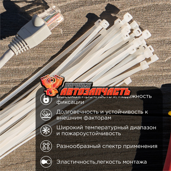 Стяжка нейлоновая белая 4,8*300 /в уп 100шт./