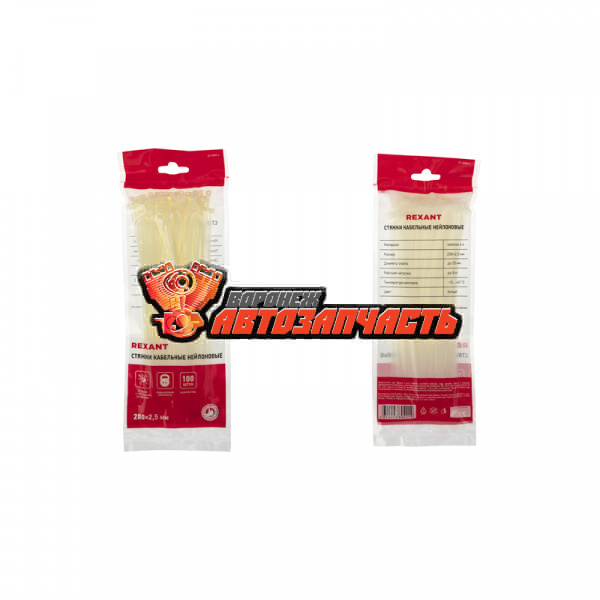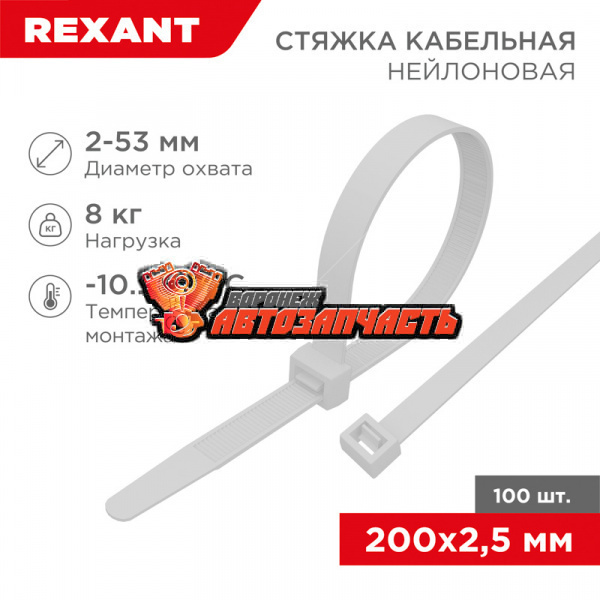Стяжка нейлоновая 200x2,5мм, белая (100 шт/уп) REXANT