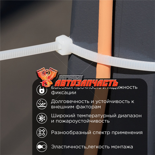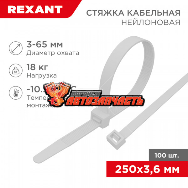 Стяжка нейлоновая 250x3,6мм, белая (100 шт/уп) REXANT