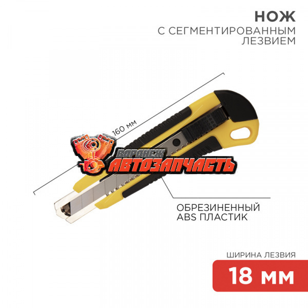 Нож с сегментированным лезвием 18мм, корпус ABS пластик обрезиненный REXANT