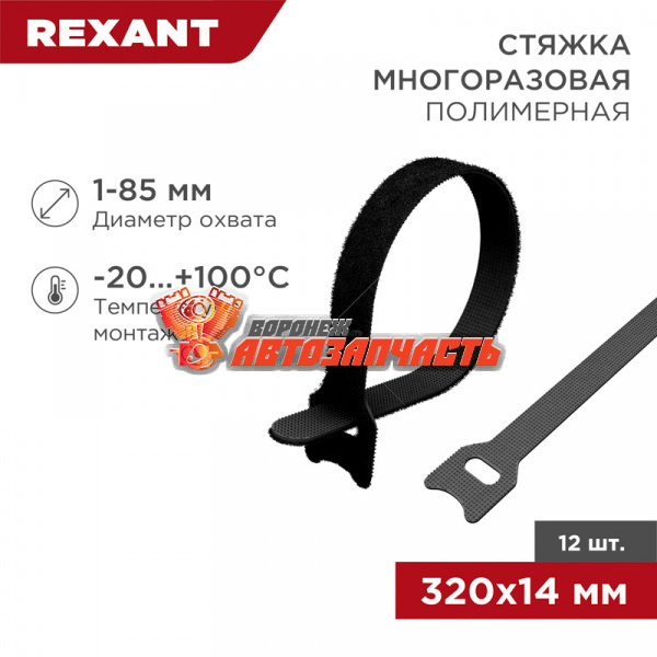 Хомут–липучка многоразовый 320х14мм, черный (12 шт/уп) REXANT