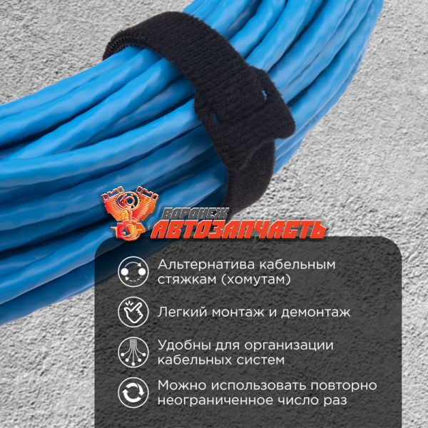 Хомут на липучке относится к категории многоразовых. При необходимости усилие затяжки можно регулировать: ослабить или затянуть сильнее.