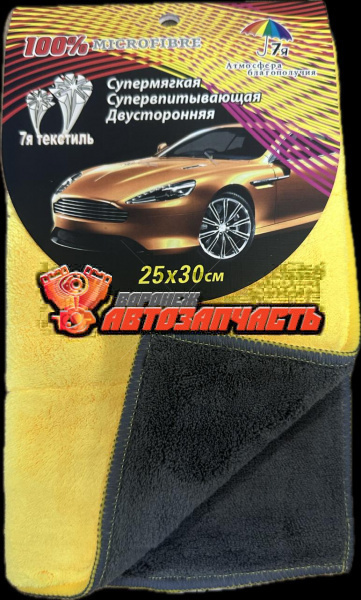 Салфетка из микрофибры 25х30 см 7Я ДВУСТОРОННЯЯ супермягкая, супервпитывающая