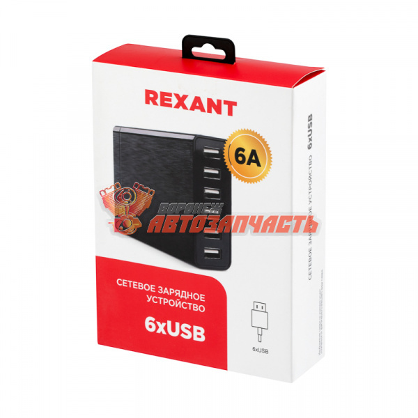 Сетевое зарядное устройство 6хUSB REXANT пополнит заряд батареи любимого смартфона или планшета в считанные минуты.