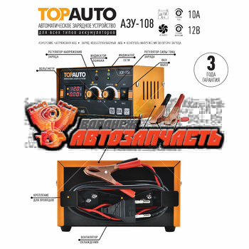 Зарядное устройство ТОП АВТО АЗУ-108 (10А, для 12В-АКБ до 150 А*ч, цифр.индик., руч.регул.