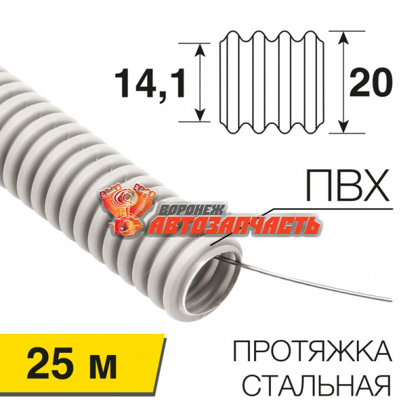 Труба гофрированная из ПВХ, с зондом, Ø20мм (бухта 25 м/уп) REXANT